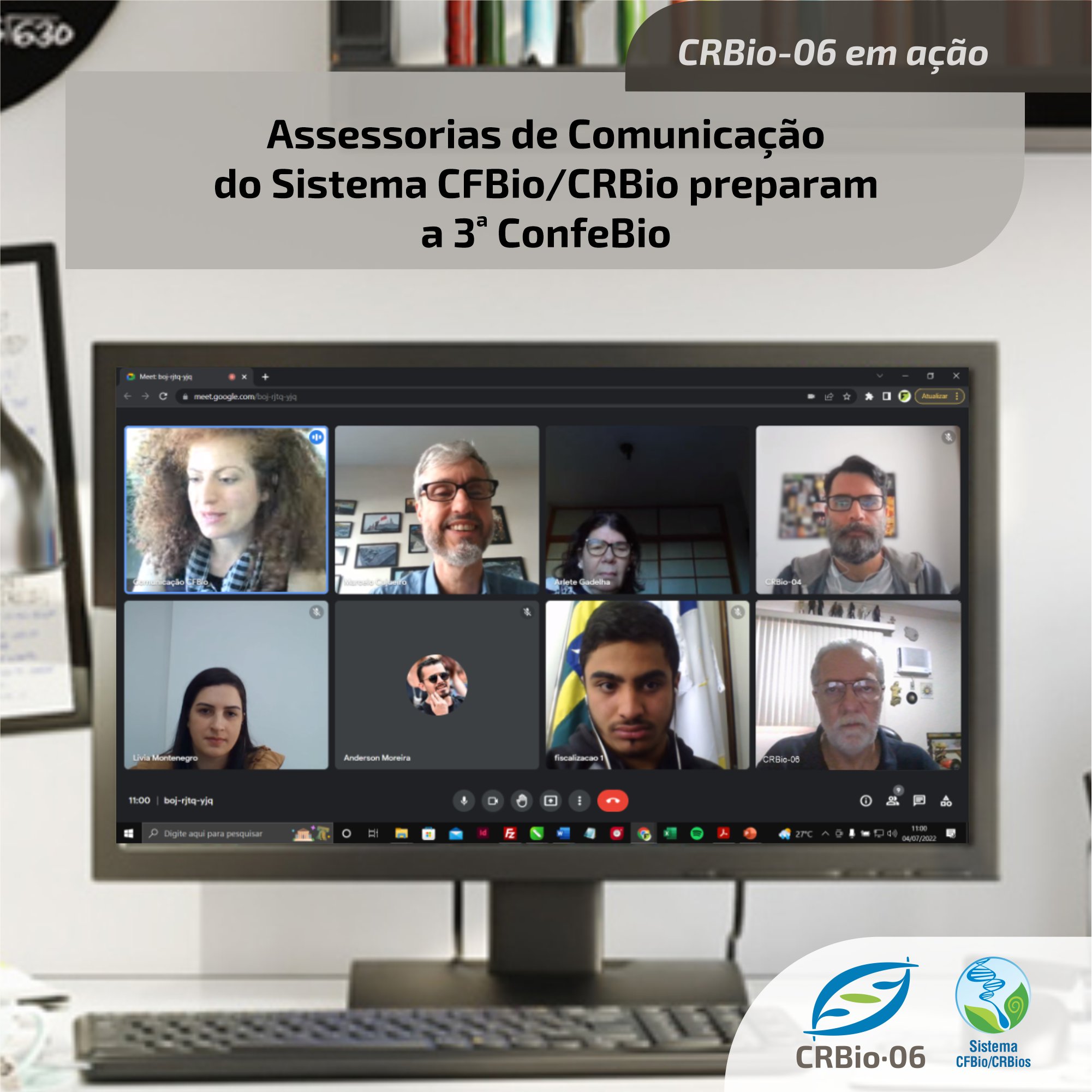 Os Assessores de Comunicação do Sistema CFBio/CRBios reuniram-se na modalidade virtual, nesta segunda (04/07), para alinhar as ações necessárias para a realização da 3ª ConfeBio – Conferência Nacional de Biologia, que contará com a participação de Palestrantes de todos os Regionais.