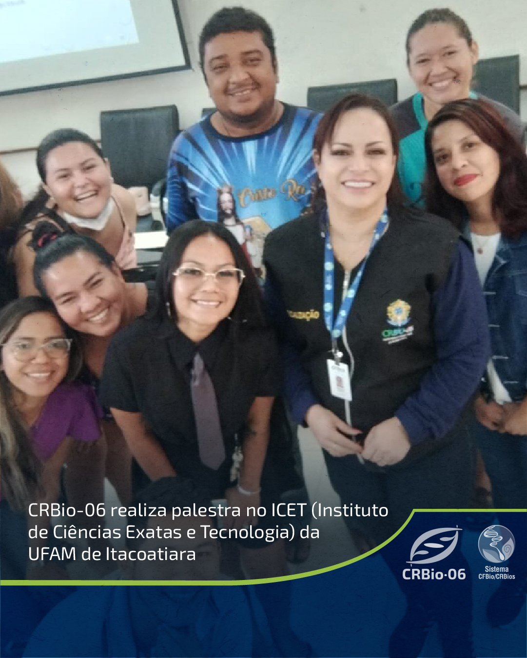 Nesta última sexta-feira (17/03), o CRBio-06 realizou palestra no ICET - Instituto de Ciências Exatas e Tecnologia da UFAM - Universidade Federal do Amazonas em Itacoatiara. A Fiscal Bióloga Luciana Fonseca (CRBio 073736/06-D) foi a palestrante e apresentou o tema “Mercado de Trabalho e Áreas de atuação do Profissional Biólogo˜. O objetivo do evento é orientar e informar graduandos sobre as diversas possibilidades de carreira que a profissão Biólogo possui e a importância do registro para a profissão
