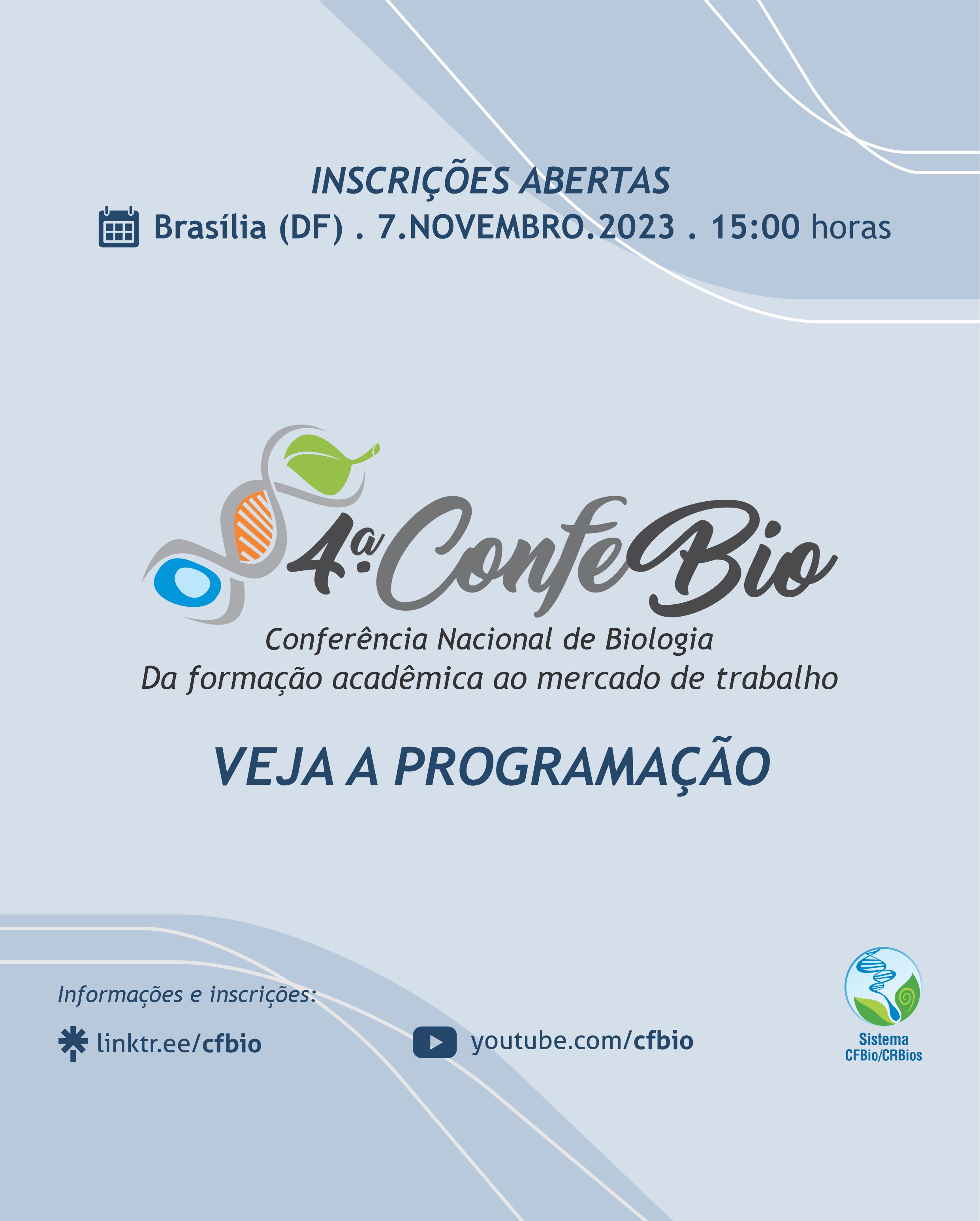 As inscrições estão abertas para a quarta edição da Conferência Nacional de Biologia - ConfeBio!